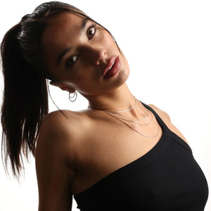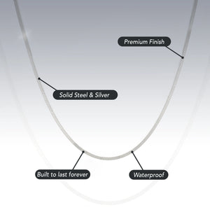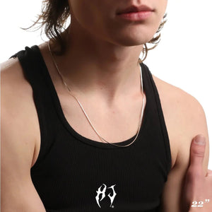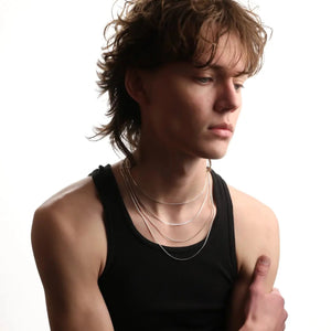 Thin and lightweight in nature, the 1.5mm Sterling Silver Snake Chain is comprised of tightly-joined squared links that resemble a snake’s body. This unique pattern creates a texture that flows along the contours of the neck, adding dimension to your style.