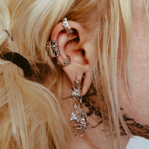 Just like you, the Spider Skull Earring patiently waits for exactly the right time to strike. It combines the masterful technique of a spider with the toughness of a skull, signifying your sixth-sense of awareness and eagerness to tackle the world.